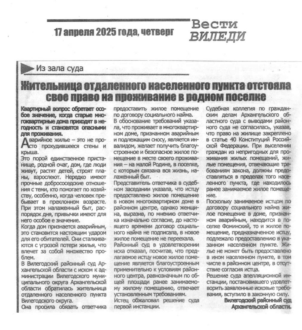 | Публикация в газете "Вести Виледи" от 17.04.2025 | версия для печати |